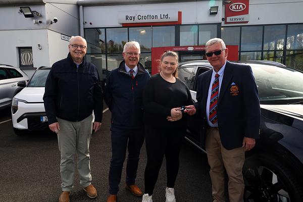 presented this week with the keys of her new car by Ray Crofton of Ray