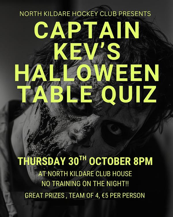 On Thursday 30 October Hockey Club Captain Kevin is running a Hallowe'en Table Quiz. Of course the bar will be open and it promises to be great craic!